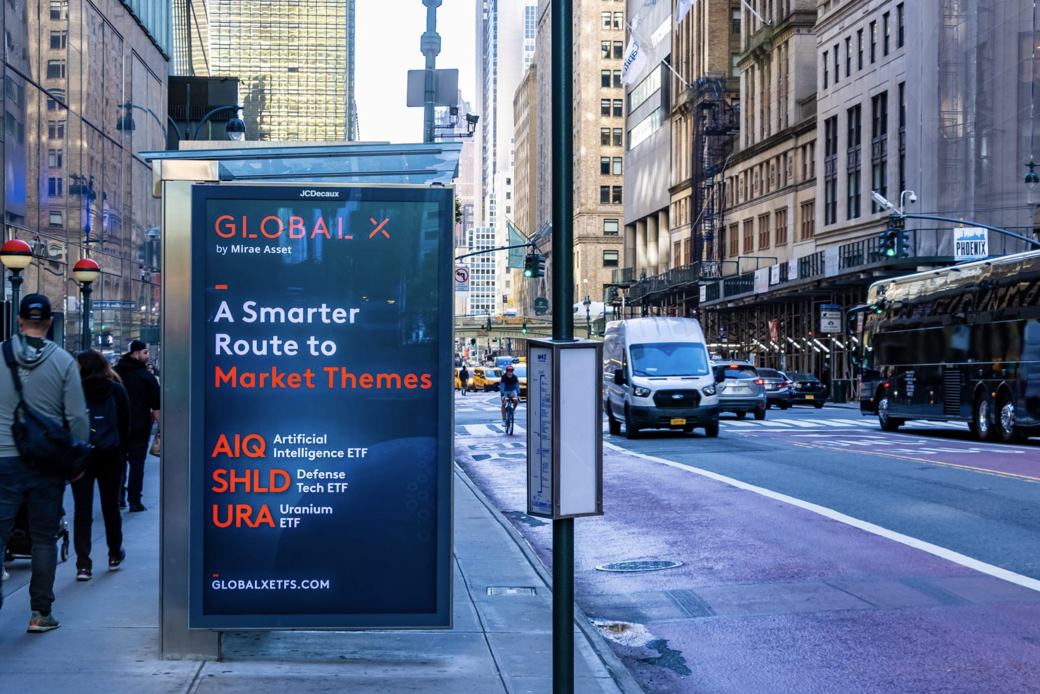 Bus shelters all across New York City donned the Global X ETFs fund ad campaign. Visible to thousands of New Yorkers every day.