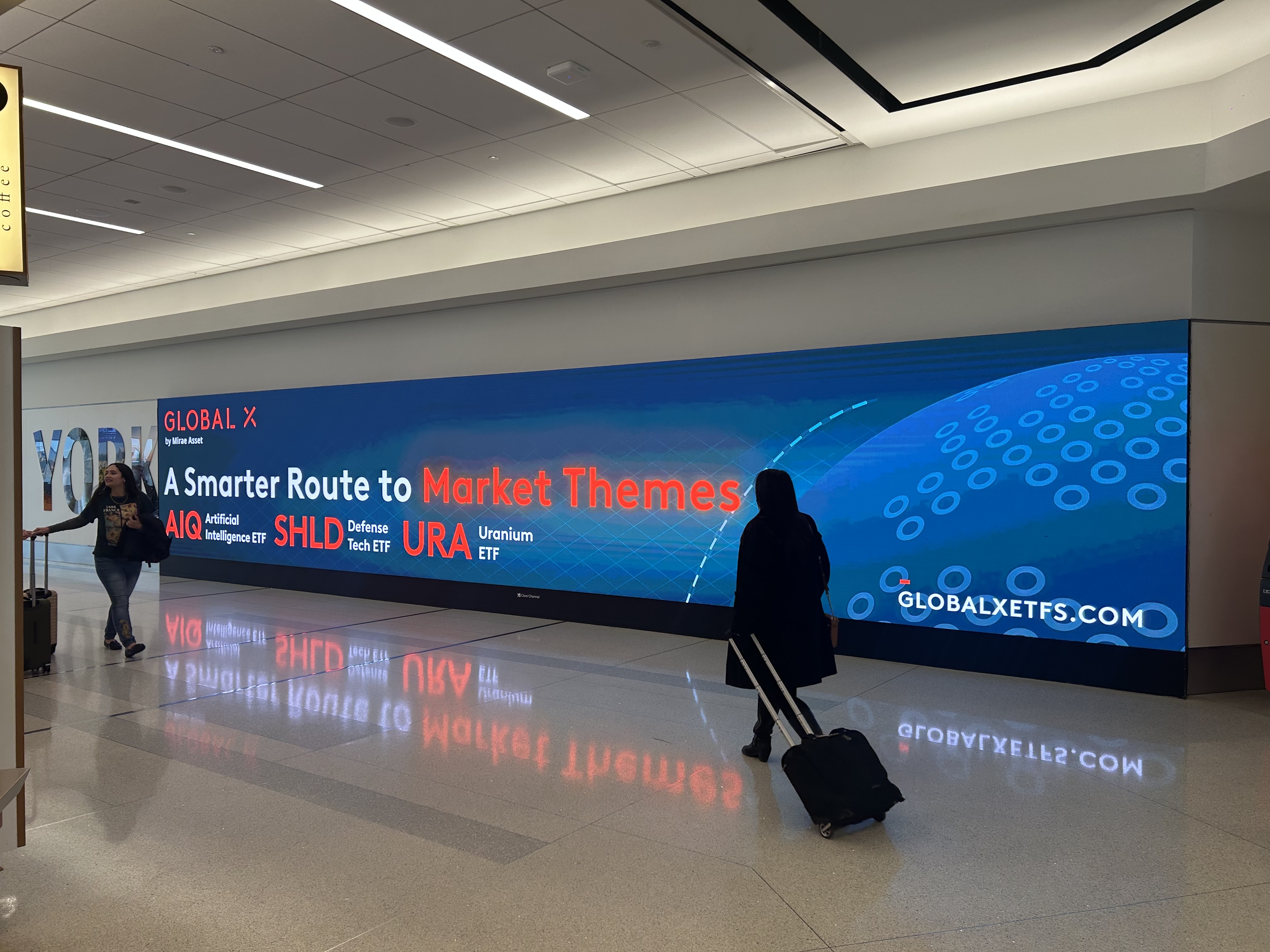 An out-of-home ad campaign I worked on for LaGuardia Airport and the bus shelters in New York promoting Global X’s high-level funds and driving awareness for the Global X Investor Summit.